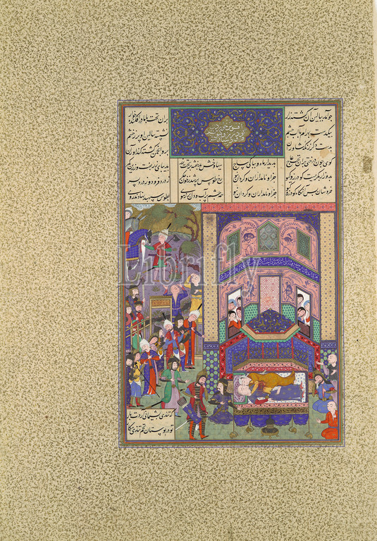 Iranians Mourn Farud, Jarira, Folio 236r, Shahnama, Book, Kings, Shah Tahmasp, ca, 1525–30, Iran, Tabriz, Opaque watercolor, ink, silver, gold, paper, Painting, H, 11 1/4 x W, 7 5/16, 28.6, 18.6 cm, Codices, Painting attributed to Mirza Muhammad Qabahat, 'Abd al-'Aziz, active first half 16th century, filled, tragic events, moments, intense drama, page illustrated, painters, depicted, mourning, Iranians, destiny, Farud, son, Prince Siyavush, mother