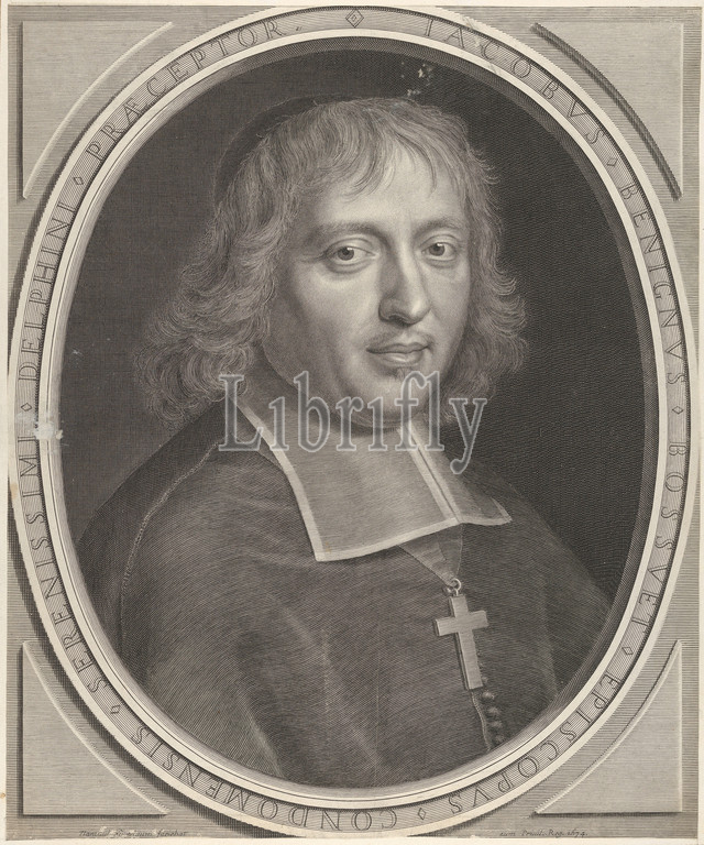 Jacques-Bénigne Bossuet, 1674, Engraving, second state, four, Petitjean & Wickert, Sheet, 17 15/16, 14 3/4, 45.5, 37.5 cm, Prints, Robert Nanteuil, French, Reims, 1623–1678, Paris