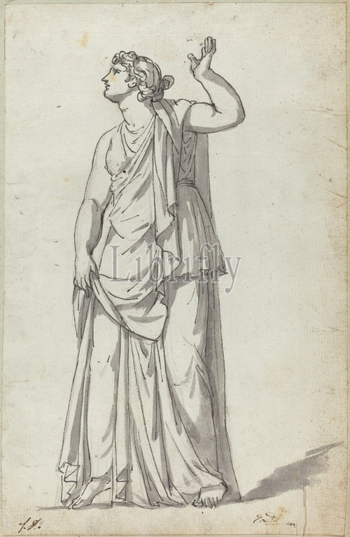 Jacques-Louis David, (artist), French, 1748 - 1825, Roman Statue of a Muse (Anchyrrhoe), pen and black ink with gray wash on laid paper, Overall (approximate): 21.2 x 13.7 cm (8 3/8 x 5 3/8 in.), support: 24 x 15.8 cm (9 7/16 x 6 1/4 in.)