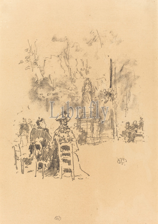 James McNeill Whistler, American, 1834, 1903, Conversation Under, Statue, Luxembourg Gardens, 1893, lithograph, black, laid paper, image