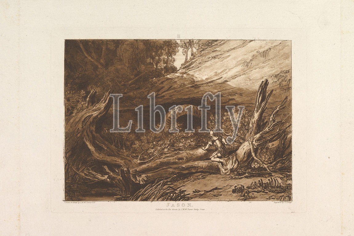 Jason, Liber Studiorum, part I, plate 6, June 11, 1807, Etching, mezzotint, first state, five, plate, 7 1/4 x 10 1/4, 18.4 26 cm, Prints, Designed and etched by Joseph Mallord William Turner, British, London, 1775–1851, Turner distilled, ideas, landscape, Latin, Book, Studies, series, seventy prints, plus, frontispiece published, 1819, establish, compositions, brown watercolor, drawings, etched outlines, copper plates