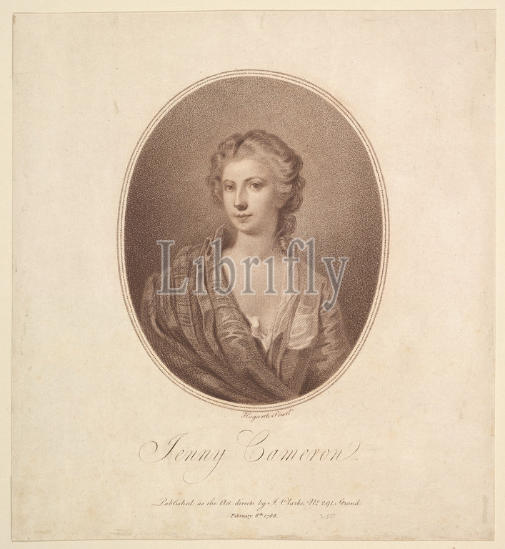 Jenny Cameron, February 8, 1788, Stipple engraving, printed in brown ink, Sheet: 10 13/16 x 9 7/8 in. (27.5 x 25.1 cm), Prints, Supposedly after a painting by William Hogarth (British, London 1697–1764 London)