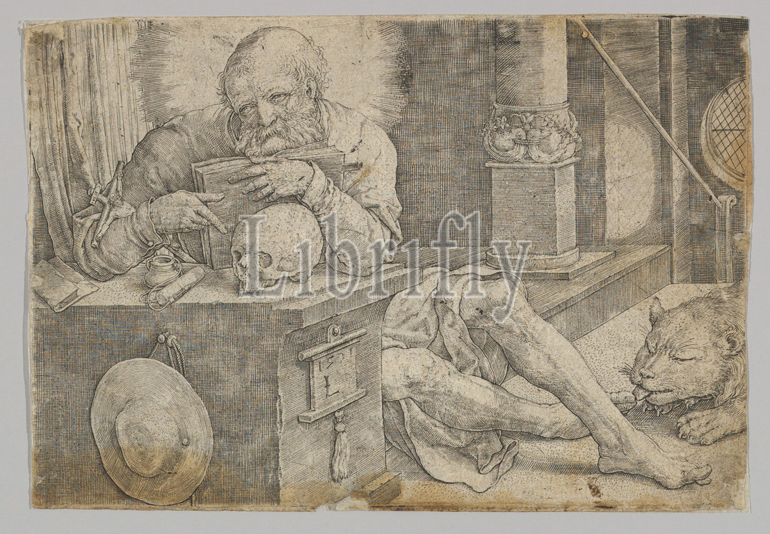 St. Jerome in his Study, 1521, Engraving; first state, sheet: 3 7/8 x 5 3/4 in. (9.8 x 14.6 cm), Prints, Lucas van Leyden (Netherlandish, Leiden ca. 1494–1533 Leiden)