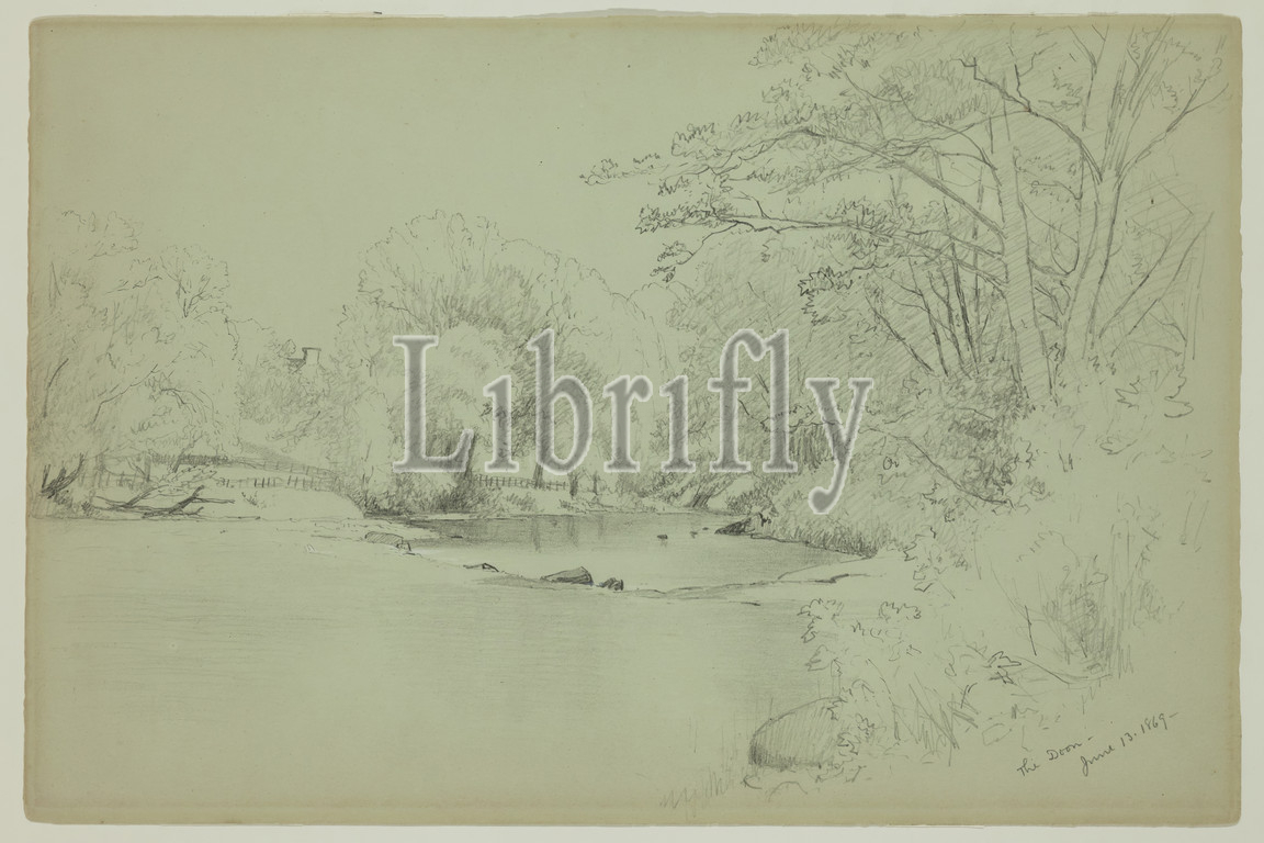 Jervis McEntee, American, 1828-1891, Doon, 1869, graphite pencil, white watercolor, green wove paper, Sheet, 8 15/16