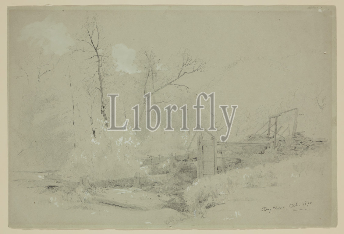 Jervis McEntee, American, 1828-1891, Stony Clove, 1870, graphite pencil, white watercolor, green wove paper, Sheet, 8 15/16