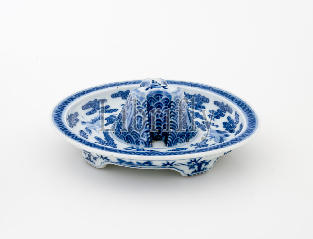 jeu stand, Qianlong, Qing dynasty, period, Qianlong, 1736-1795, porcelain with blue glaze, 2-1/2 x 6-1/2 (diam.) in., Asian Art