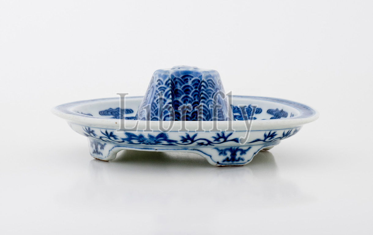 jeu stand, Qianlong, Qing dynasty, period, 1736-1795, porcelain, blue glaze, 2-1/2 x 6-1/2, diam, Asian Art