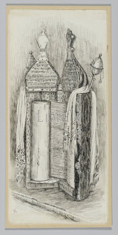Jewish Bible from the Synagogue in Jerusalem, The Life of Our Lord Jesus Christ, La Vie de Notre-Seigneur Jésus-Christ, James Tissot, French, 1836-1902, Pen and ink on paper mounted on board, 1886-1887 or 1889, Sheet: 7 1/16 x 3 1/4 in., 17.9 x 8.3 cm, bible, drawing, IMLS, Jerusalem, jewish, Jewish Bible, religious art, synagogue, talmud, Tissot, torah