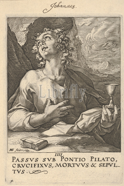 St. John, from Christ, the Apostles and St. Paul with the Creed, ca. 1589, Engraving, plate: 5 15/16 x 4 1/8 in. (15.1 x 10.4 cm), Prints, Hendrick Goltzius (Netherlandish, Mühlbracht 1558–1617 Haarlem)