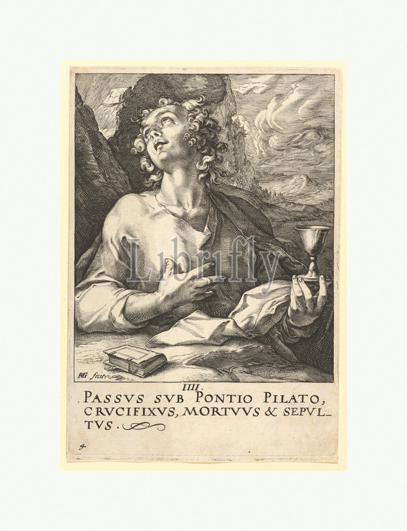 St. John, from Christ, the Apostles and St. Paul with the Creed, ca. 1589, Engraving, sheet: 6 x 4 3/16 in. (15.3 x 10.6 cm), Prints, Hendrick Goltzius (Netherlandish, Mühlbracht 1558–1617 Haarlem)