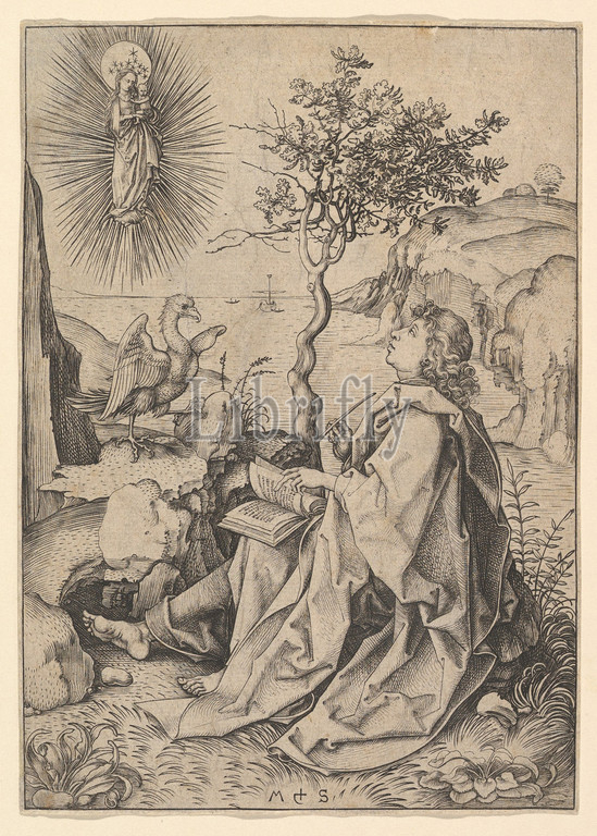 St, John, Evangelist, Patmos, Engraving, Prints, Martin Schongauer, German, Colmar ca., 1435/50–1491, Breisach