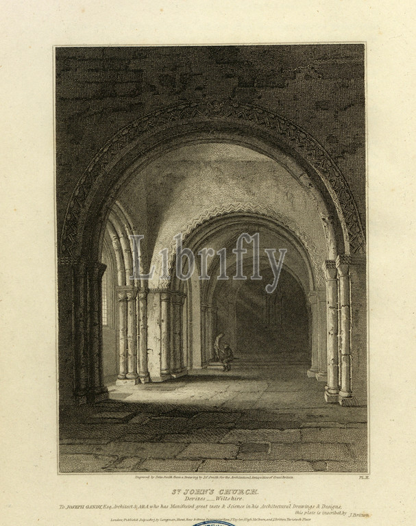 St. John's Church, Devizes Wiltshire, St. John's Church, Devizes, Wiltshire, signed, Engraved, John Smith, Drawing, J. C. Smith, Fig. 4, Pl. II, according, p. 4, Smith, J. C., John, engr., 1807, John Britton, architectural antiquities, Great Britain, represented, illustrated, series, views, elevations, plans, sections, details, various ancient English edifices, historical, descriptive accounts, Bd, 2, London, J, Taylor, 1807-1826