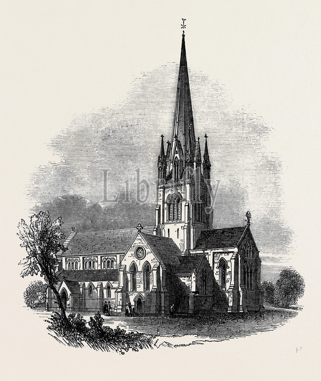 st. john's, house of God, church, tting hill, london, uk, 1845 engraving, engraved image, history, illustrative technique, engravement, victorian, arts, culture, retro styled, vintage, retro, arkheia
