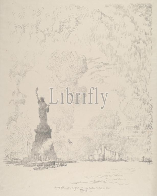 Joseph Pennell, American, 1857, 1926, Statue, New York Bay, New York, 1910, lithograph