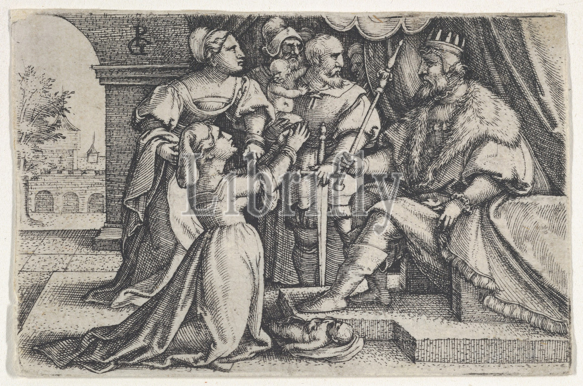 Judgment, Solomon, Engraving, Sheet, 1 15/16, 3 1/16, 5, 7.7 cm, Prints, Georg Pencz, German, Wroclaw ca., 1500–1550, Leipzig