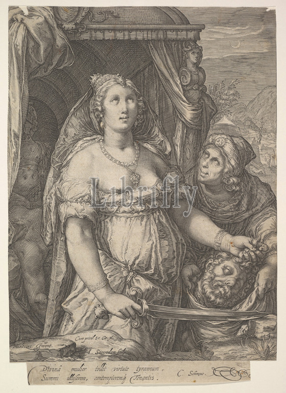 Judith, Engraving, sheet, 11 x 7 7/8, 28 20 cm, Prints, Jan, Pietersz., Saenredam, Netherlandish, Zaandam ca., 1565–1607, Assendelft, After Hendrick Goltzius, Mühlbracht, 1558–1617, Haarlem