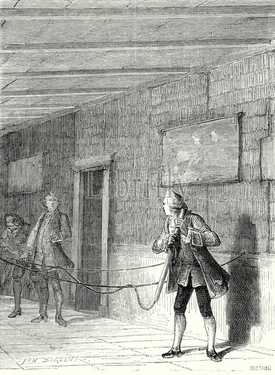 2 july, 1729, grey, wehler, discovery, electricity, conductive bodies, experiment, scientific experiment, science, 19th century engraving, vintage, old print, 19th century, victorian, retro, quint, lox, engraving