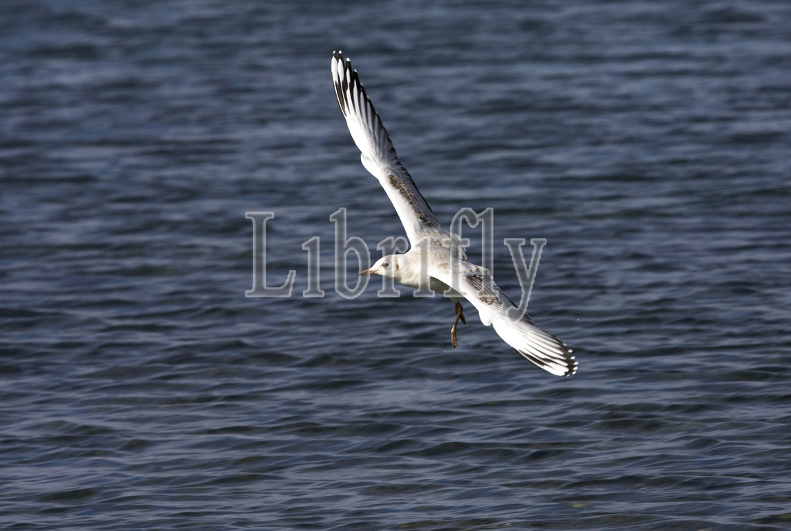 Juvenile Brown-hooded Gull in flight, Chroicocephalus maculipennis
