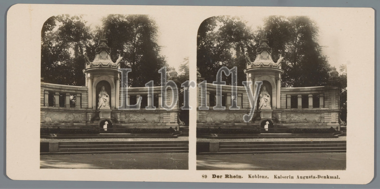 Kaiserin-Augusta-Denkmal, Koblenz Der Rhein, Koblenz, Kaiserin Augusta-Denkmal, title, object, sculpture, monument, statue, Neue Photographische Gesellschaft, mentioned, 1903, cardboard, photographic paper, gelatin black-and-white print