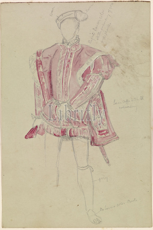 The King of Hearts, Copy of a Portrait of Edward VI, costume study, 1862 William Holman Hunt, Costume, Drawing, Ink, Pencil, Sketch, PortraitPre-Raphaelite, Clothing, Study, Royal, King