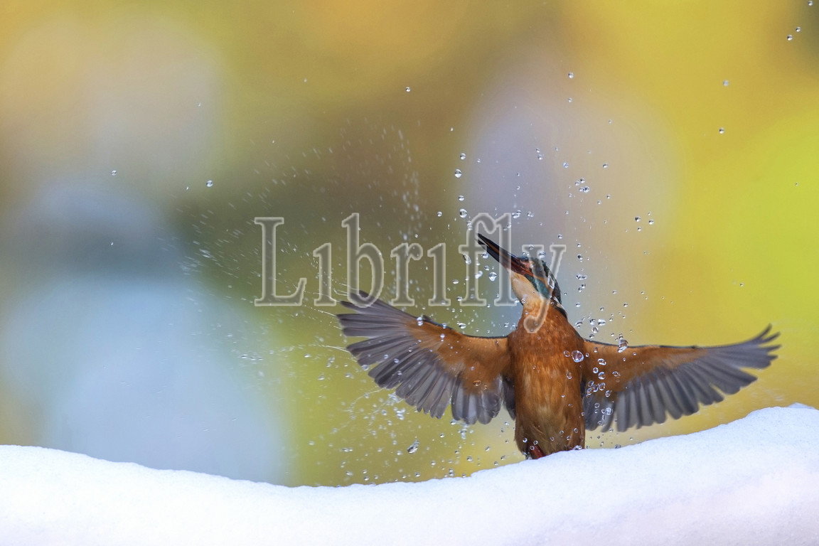 Kingfisher hunting in snow, The Netherlands