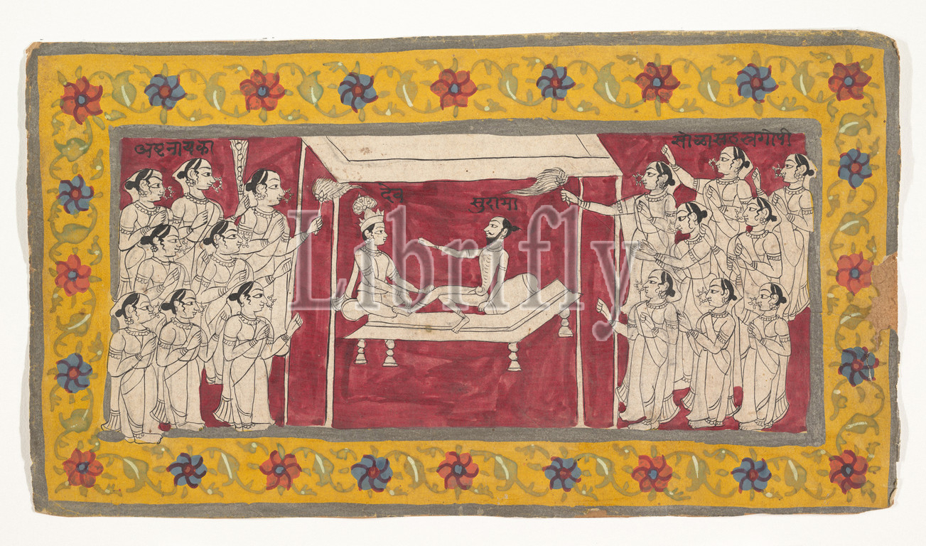 Krishna, Ascetic, ca.1850, India, Maharashtra, Marathi, Ink, opaque watercolor, paper, 11 1/2 x 6 7/16, 29.2 16.4 cm, Paintings, Krishna converses, emaciated ascetic, crowds, onlookers observe, auspicious conversation