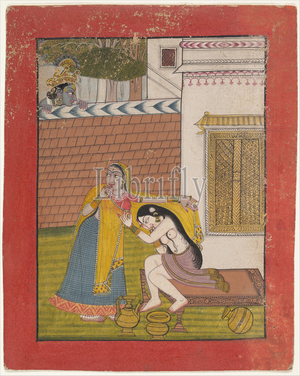 Krishna Spying, Radha, ca, 1780–90, India, Punjab Hills, Mandi, Ink, opaque watercolor, paper, 8 5/8 x 6 7/8, 21.9 17.5 cm, Paintings