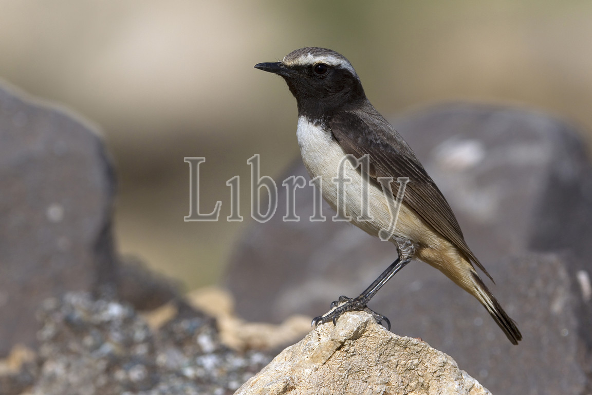 Kurdish Wheatear male perched on rock, Oenanthe xanthoprymna