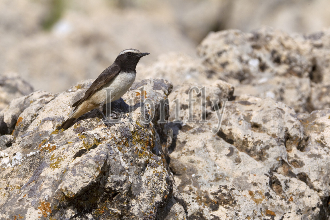 Kurdish Wheatear male perched on rock, Oenanthe xanthoprymna