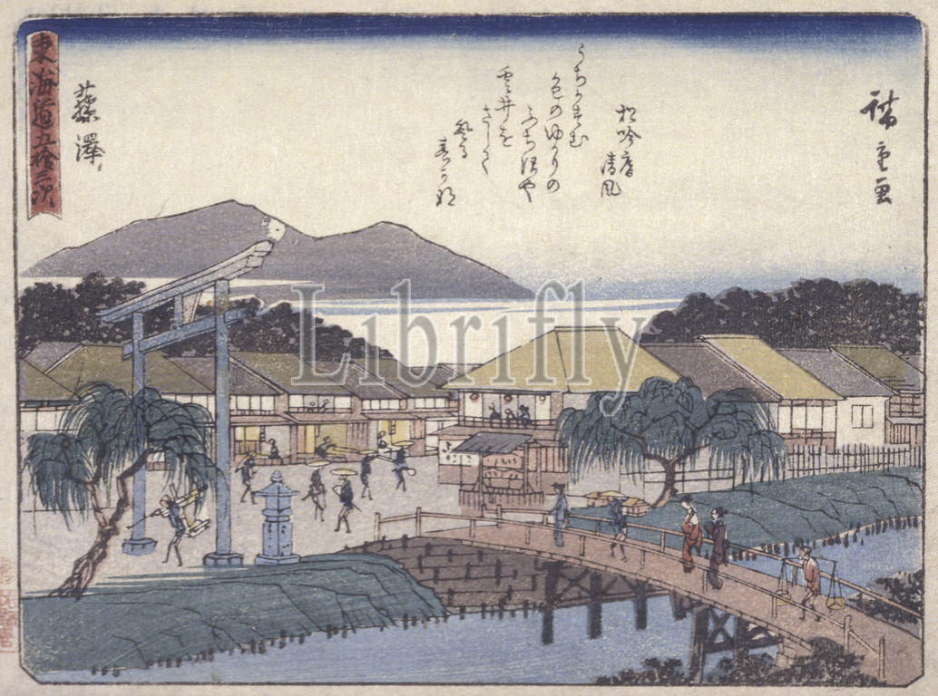 Kyoka Tokaido Series, Fujisawa, Utagawa Hiroshige 歌川広重, Japanese, 1797-1858, ink, paper, woodblock print, 6-3/16 x 8-3/16, image, Asian Art