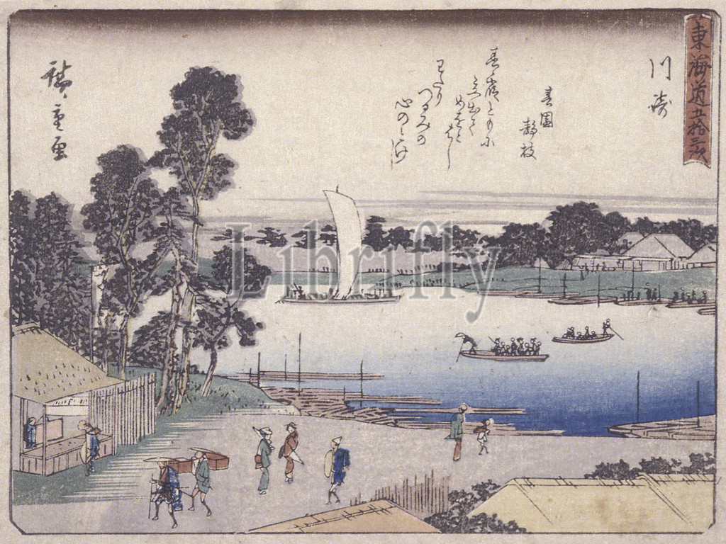 Kyoka Tokaido Series, Kawasaki, Utagawa Hiroshige 歌川広重, Japanese, 1797-1858, ink, paper, woodblock print, 6-3/16 x 8-3/16, image, Asian Art