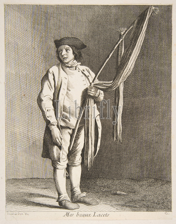 Laces Peddler, 1738, Etching with some engraving, Sheet: 9 1/4 x 7 1/8 in. (23.5 x 18.1 cm), Prints, Anne Claude Philippe de Tubières, comte de Caylus (French, Paris 1692–1765 Paris), After Edme Bouchardon (French, Chaumont 1698–1762 Paris)