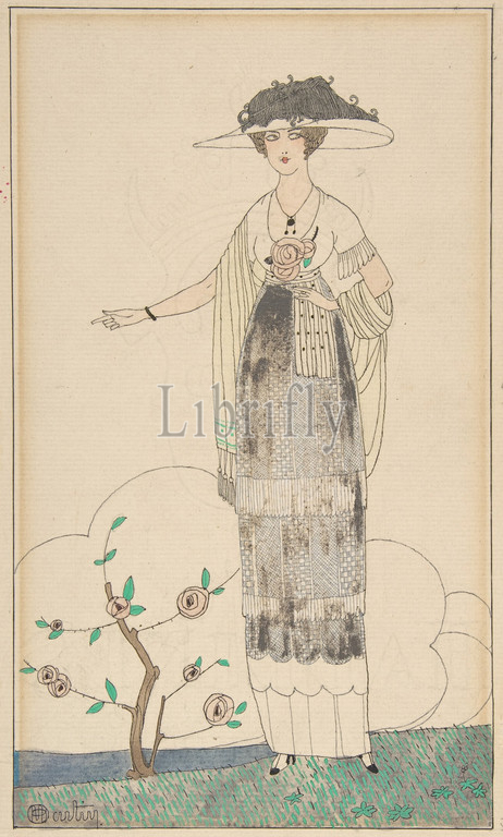 A Lady and a Rose Bush, 1913, Pen and ink, watercolor, and lead white on laid paper, sheet: 11 7/8 x 7 15/16 in. (30.2 x 20.2 cm), Drawings, Charles Martin (French, Montpellier 1884/88–1932/34 Paris)