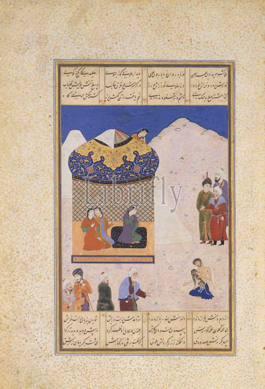 'Laila Visiting Majnun in the Desert', Folio from a Khamsa (Quintet) of Amir Khusrau Dihlavi, 1520–25, Made in present-day Afghanistan, Herat, Ink, opaque watercolor, and gold on paper, 8 1/2 x 5 1/4in. (21.6 x 13.3cm), Codices