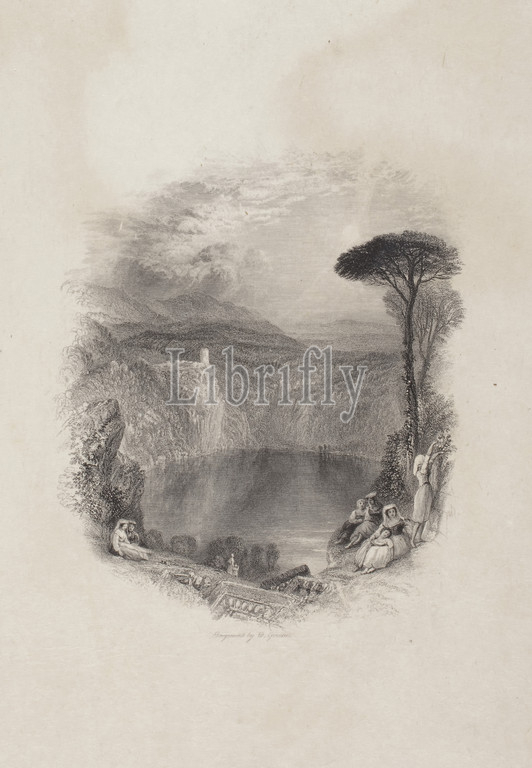 Lake, Nemi, Joseph Mallord William Turner, English, 1775-1851, Edward Goodall, Engraver, 1795-1870, 1844, engraving, India paper, chine collé, 4-1/4 x 3-3/4, image, 17 x 11-1/2, sheet, series, Broadley's Poems