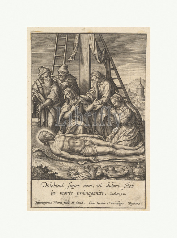 Lamentation, 1619, Engraving, second state, two, Sheet, 3 7/8, 2 9/16, 9.9, 6.5 cm, Prints, Hieronymus, Jerome, Wierix, Netherlandish, ca., 1553–1619, Antwerp