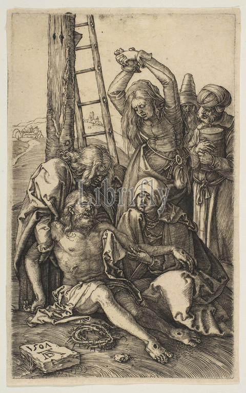 Lamentation, Passion, 1507, Engraving, Sheet, 4 11/16, 2 15/16, 11.9, 7.4 cm, Prints, Albrecht Dürer, German, Nuremberg, 1471–1528