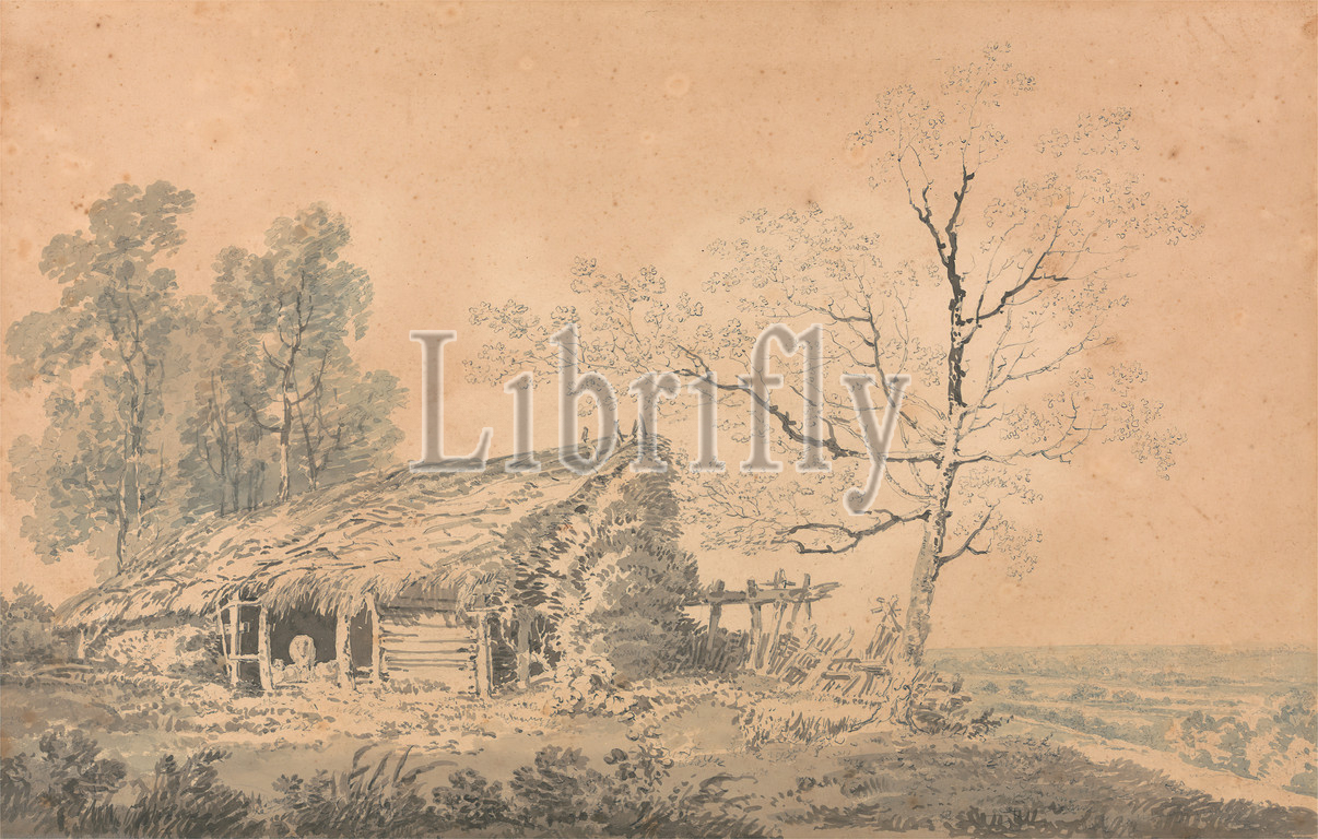 Landscape, Barn, Joseph Mallord William Turner, 1775–1851, British, ca, 1795, Graphite, watercolor, medium, slightly textured, cream wove paper, mounted, thick, smooth, wove paper, Mount, Sheet, barn, cows, fences, landscape, river, trees, valley