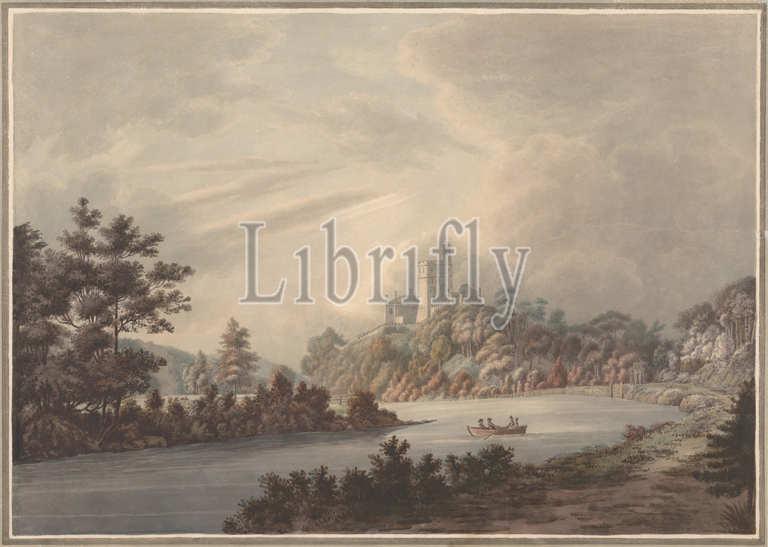Landscape, Castle, River, William Green, 1760–1823, British, Watercolor, pen, gray ink, graphite, moderately thick, moderately textured, cream, wove paper, Sheet, Contemporary drawn border, Image, architectural subject, castle, landscape, river, sky