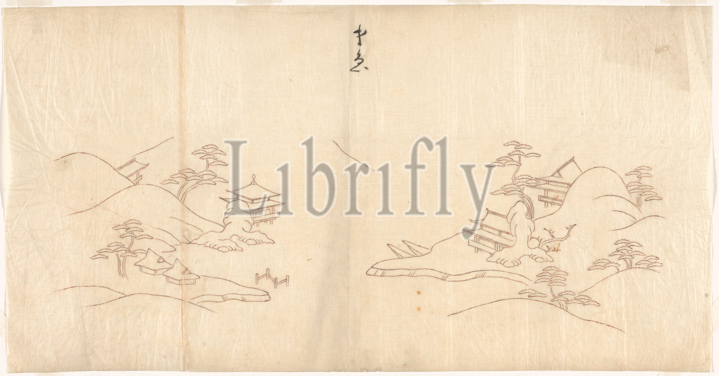 Landscape in Chinese style, Design drawing for paintwork., Sasaya (workshop of), Kyoto, c. 1800, paper, ink, lacquer (coating), painting