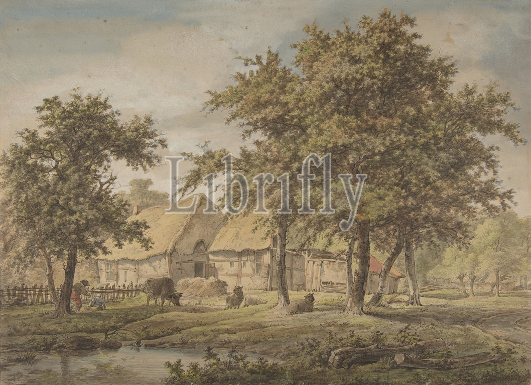 Landscape, Farmhouse, 1757–1837, Pen, black ink, watercolor, sheet, 12 x 16 5/8, 30.5 42.2 cm, Drawings, Adrianus de Visser, Dutch, Rotterdam, 1762–1837, Alkmaar