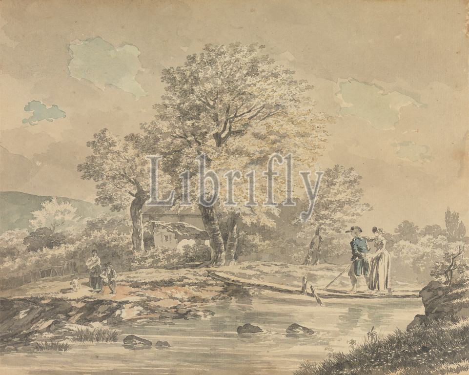 Landscape, Footbridge, ca, 1780, Watercolor, medium, slightly textured, cream laid paper, Sheet, architectural subject
