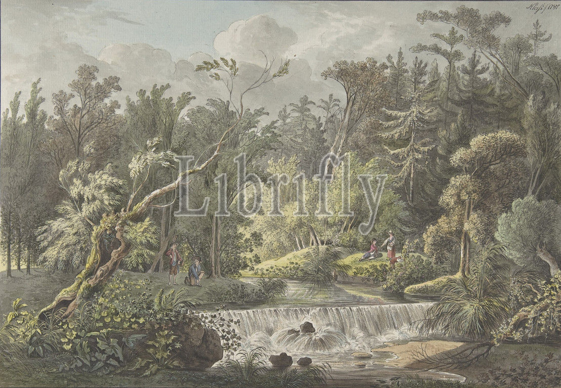 Landscape, Waterfall, late 18th–early 19th century, Pen, black ink, watercolor, Double framing line, pen, sheet, 9 13/16 x 14 5/16, 25 36.3 cm, Drawings, Friedrich Christian Klass, German, Dresden, 1752–1827