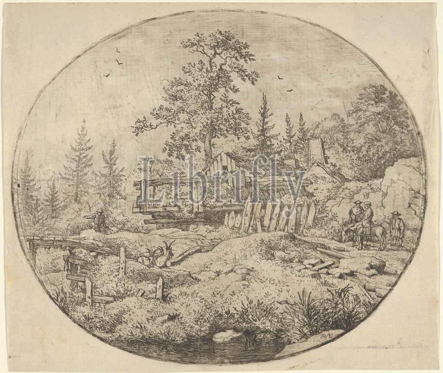 Landscape, Wooden Bridge, Engraving, third state, four, Plate, 6 1/2, 7 5/8, 16.5, 19.3 cm, Prints, Allart van Everdingen, Dutch, Alkmaar, 1621–1675, Amsterdam