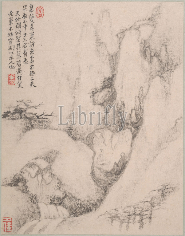 清 戴本孝 山水圬冊 紙本, Landscapes, Qing dynasty, 1644–1911, China, Album, twelve leaves, ink, paper, 8 7/16, 6 9/16, 21.4, 16.7 cm, Paintings, Dai Benxiao, Chinese, 1621–1693, life Dai pursued, dry, softly textured, style, creating evocative, images, Daoist reclusion, high-minded self-cultivation, album, finest examples, Dai, art, stylistically datable, late maturity, circa 1690