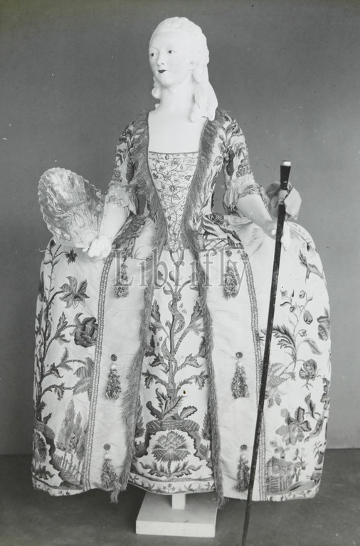 Lantern Slide, 18th Century Woman's Dress, 1909-1930, set, ninety photographic magic lantern slides containing images, artefacts, art works, decorative arts, interiors, furniture, belong, various museum, gallery collections, United Kingdom, Francis Collection, pre-cinematic apparatus, ephemera, acquired, Australian, Victorian Governments, 1975