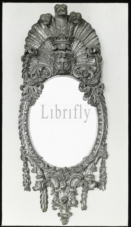 Lantern Slide, Kent Mirror, Victoria & Albert Museum, London, 1909-1930, set, ninety photographic magic lantern slides containing images, artefacts, art works, decorative arts, interiors, furniture, belong, various museum, gallery collections, United Kingdom, slide depicts, mirror designed, William Kent, circa 1740, mirror, part, collection, c 1685-1748