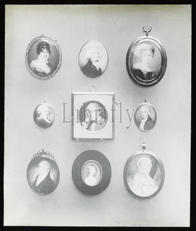 Lantern Slide - Portrait Miniatures, 1909-1930, One of a set of ninety magic lantern slides containing images of artefacts, art works, decorative arts, interiors and furniture which appear to belong to various museum and gallery collections in the United Kingdom. The Francis Collection of pre-cinematic apparatus and ephemera was acquired by the Australian and Victorian Governments in 1975.