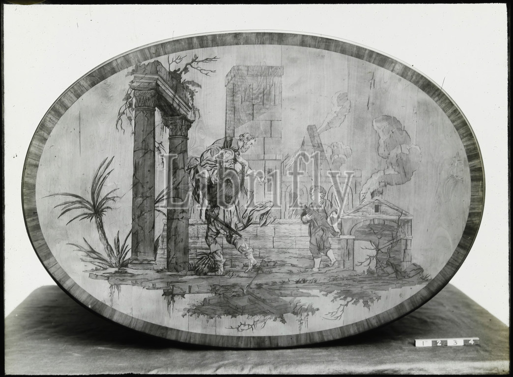 Lantern Slide - 'Satin Table Top', 1909-1930, One of a set of ninety magic lantern slides containing images of artefacts, art works, decorative arts, interiors and furniture which appear to belong to various museum and gallery collections in the United Kingdom. The Francis Collection of pre-cinematic apparatus and ephemera was acquired by the Australian and Victorian Governments in 1975.