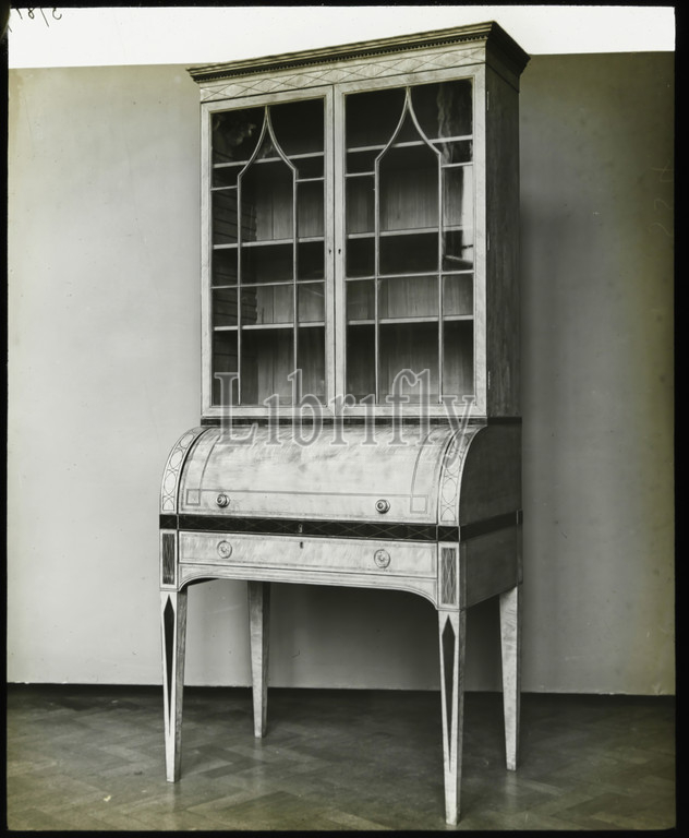 Lantern Slide, Sheraton Bureau Bookcase, 1909-1930, set, ninety magic lantern slides containing images, artefacts, art works, decorative arts, interiors, furniture, belong, various museum, gallery collections, United Kingdom, Francis Collection, pre-cinematic apparatus, ephemera, acquired, Australian, Victorian Governments, 1975